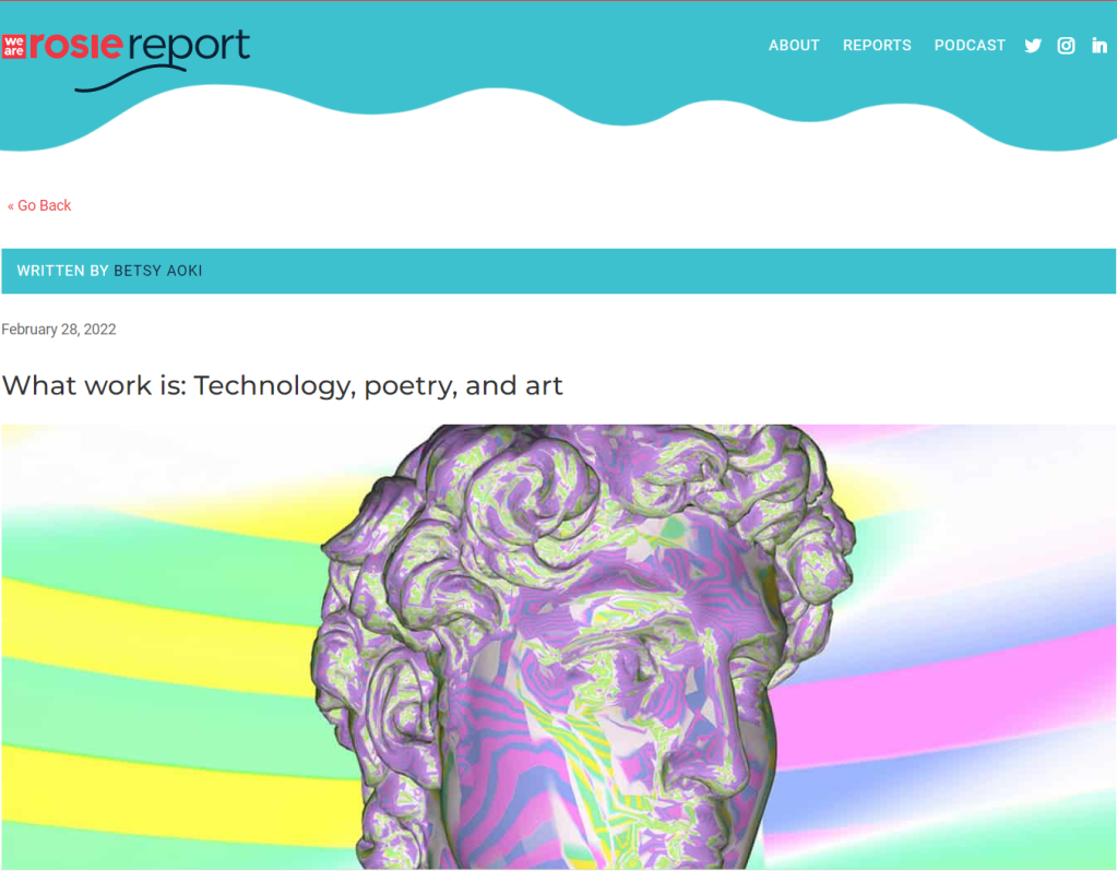 “Masterfully, she weaves her knowledge from her software and gaming background into the poetic image of her reality.“